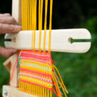 Naveta en madera para tejidos en telar vertical y horizontal. Su acabado en los bordes permite que también puedas usar este accesorio como pala. Producto artesanal 100% colombiano